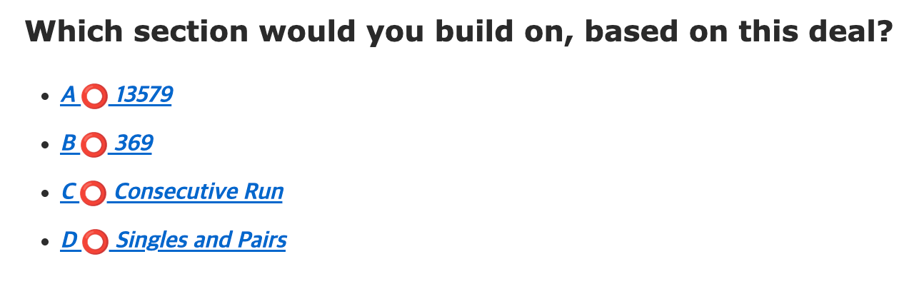This Section could serve as a reasonable backup during the Charleston, with the pair of 3 Bams and supporting 1 and 3 Dots. However, the gaps make it less reliable as your primary focus. If you chose this option, you’re on a valid path, just not the strongest one available.