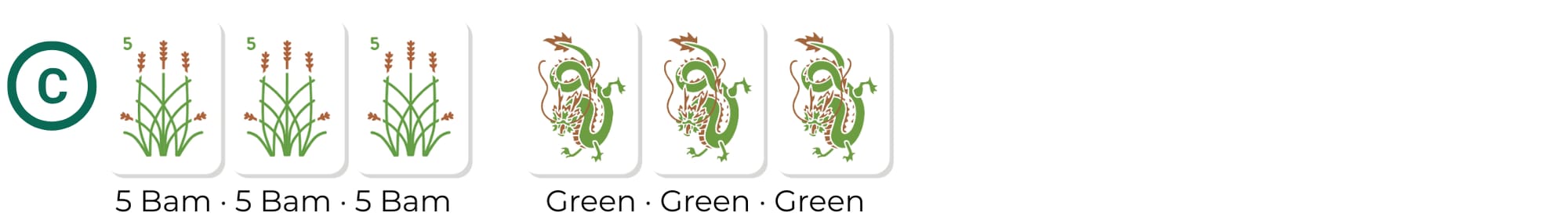 Reading exposures helps you avoid playing conflicting hands or discarding their winning tile. Your opponent has two exposures, shown below.